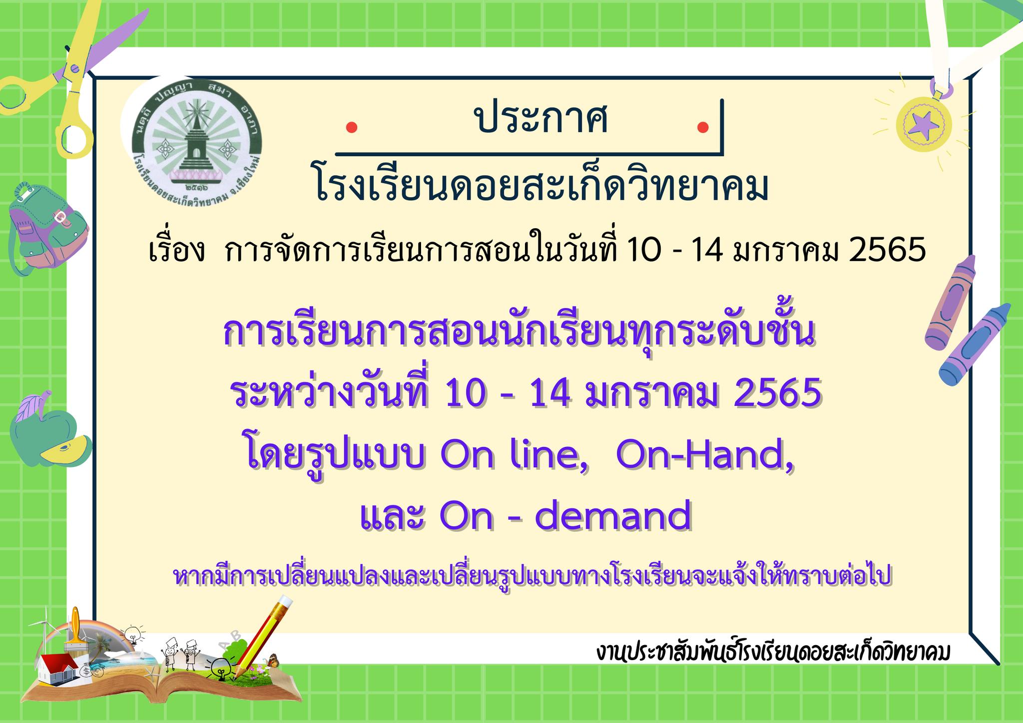 ประกาศโรงเรียนดอยสะเก็ดวิทยาคม เรื่อง การจัดการเรียนการสอนระหว่างวันที่ 10 - 14 มกราคม 2565