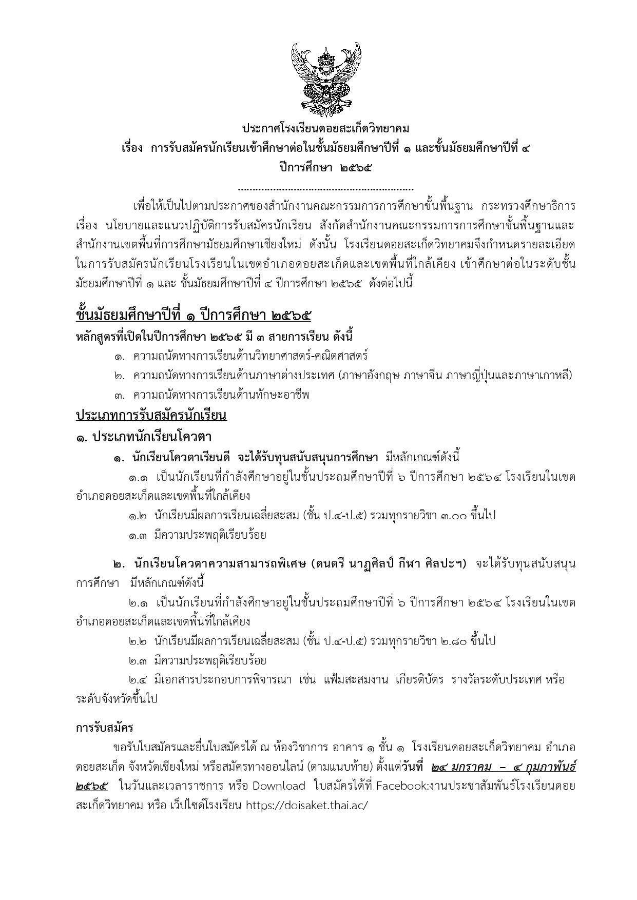 Facebook งานประชาสัมพันธ์ โรงเรียนดอยสะเก็ดวิทยาคม