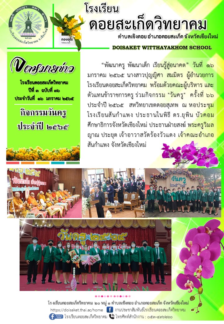 จดหมายข่าว ฉบับที่ ๓๖ ประจำวันที่ ๑๖ มกราคม ๒๕๖๕ #กิจกรรมวันครู ๒๕๖๕ "พัฒนาครู พัฒนาเด็ก เรียนรู้สู่อนาคต"