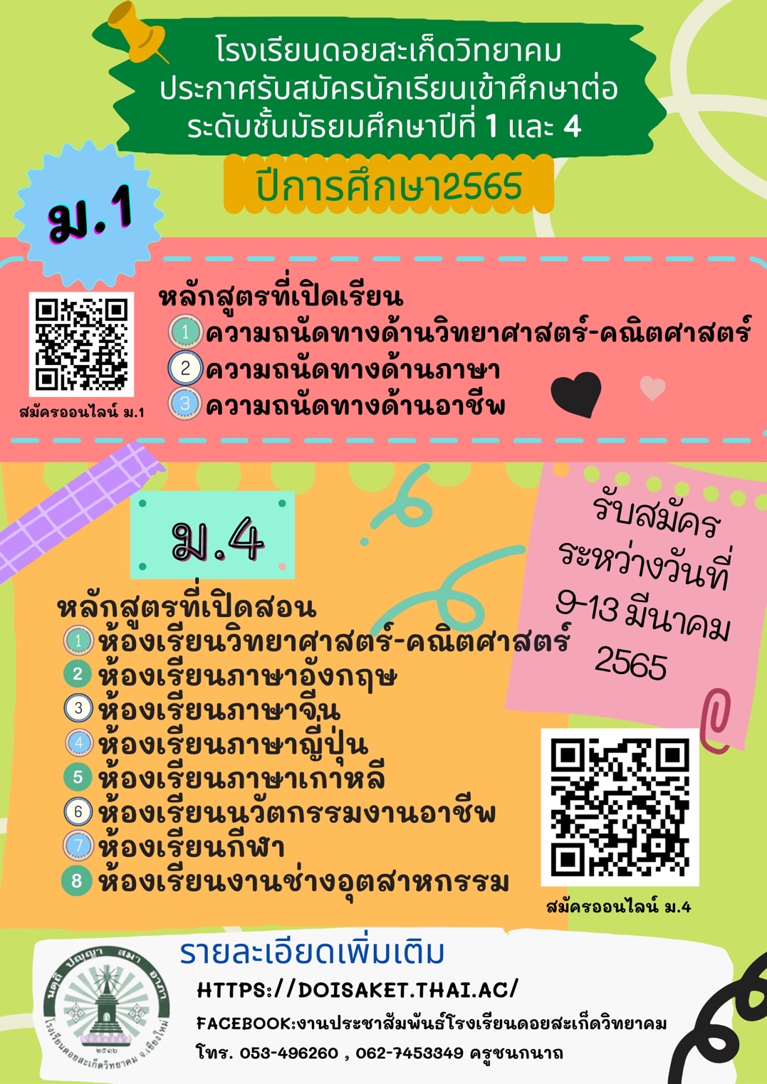 ประกาศรับสมัครนักเรียนเข้าศึกษาต่อในระดับชั้นมัธยมศึกษาปีที่ 1 และ 4 ปีการศึกษา 2556