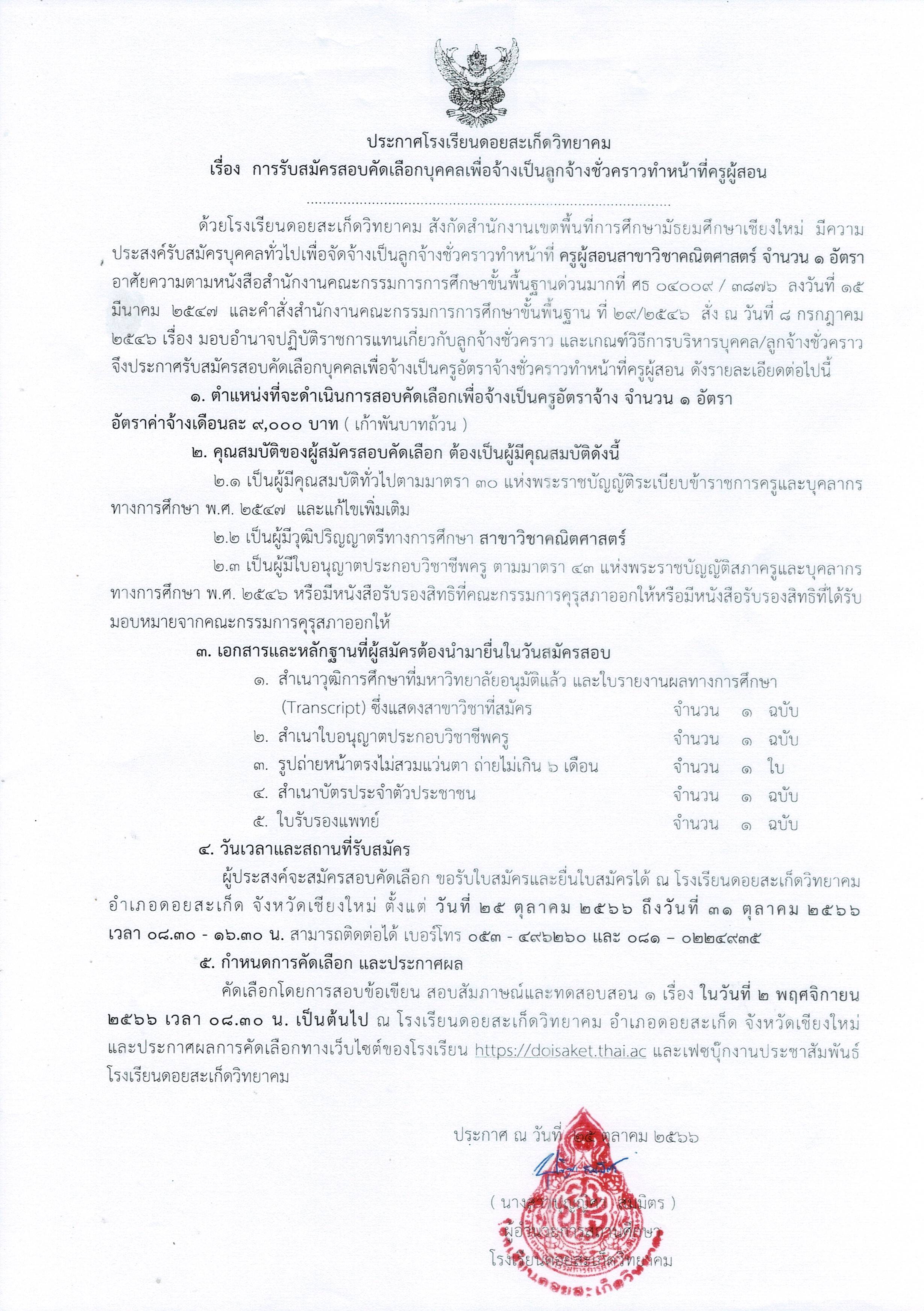 การรับสมัครสอบคัดเลือกบุคคลเพื่อจ้างเป็นลูกจ้างชั่วคราว ครูอัตราจ้าง วิชาเอก สาขาคณิตศาสตร์