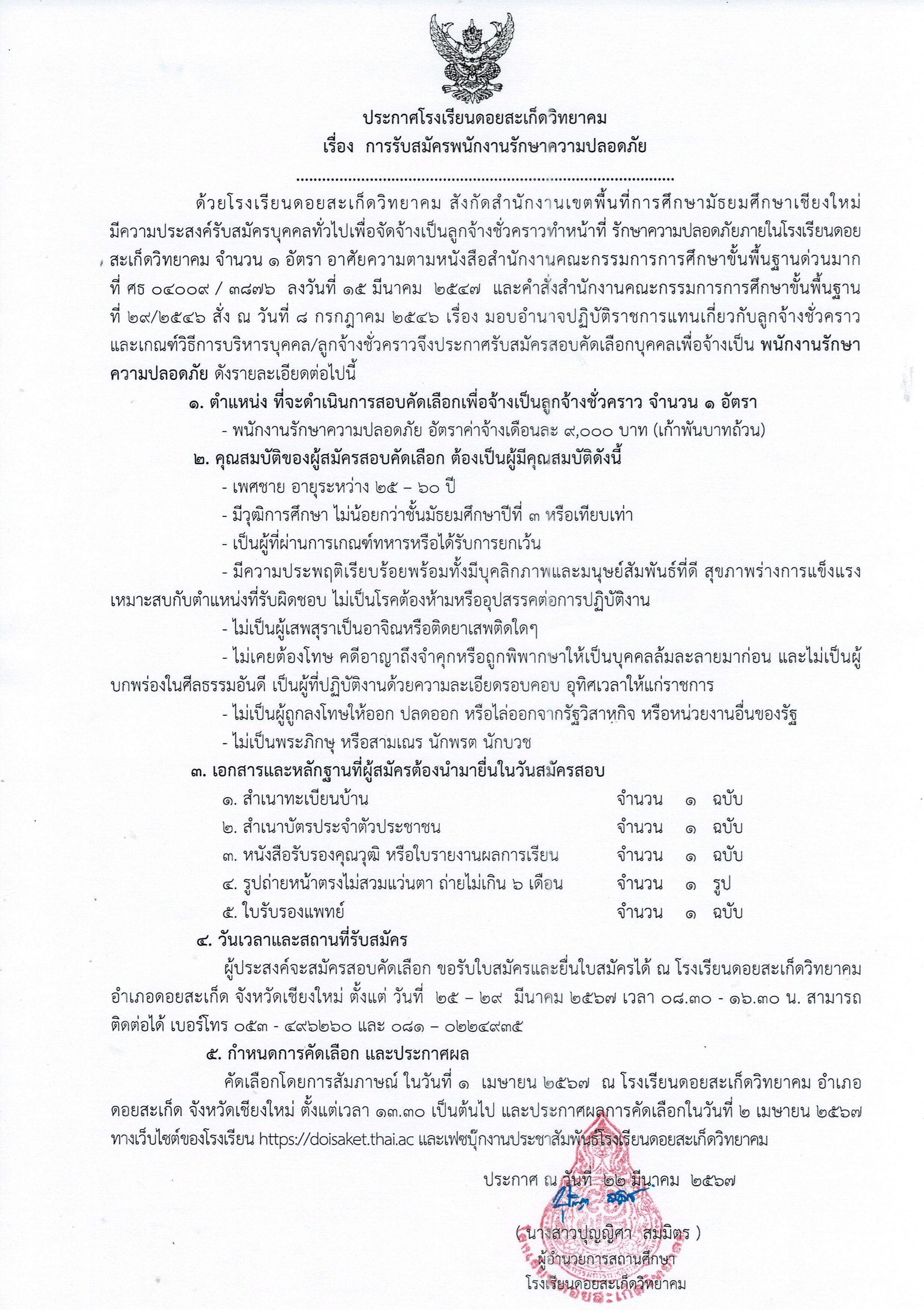 ประกาศรับสมัครพนักงานรักษาความปลอดภัย