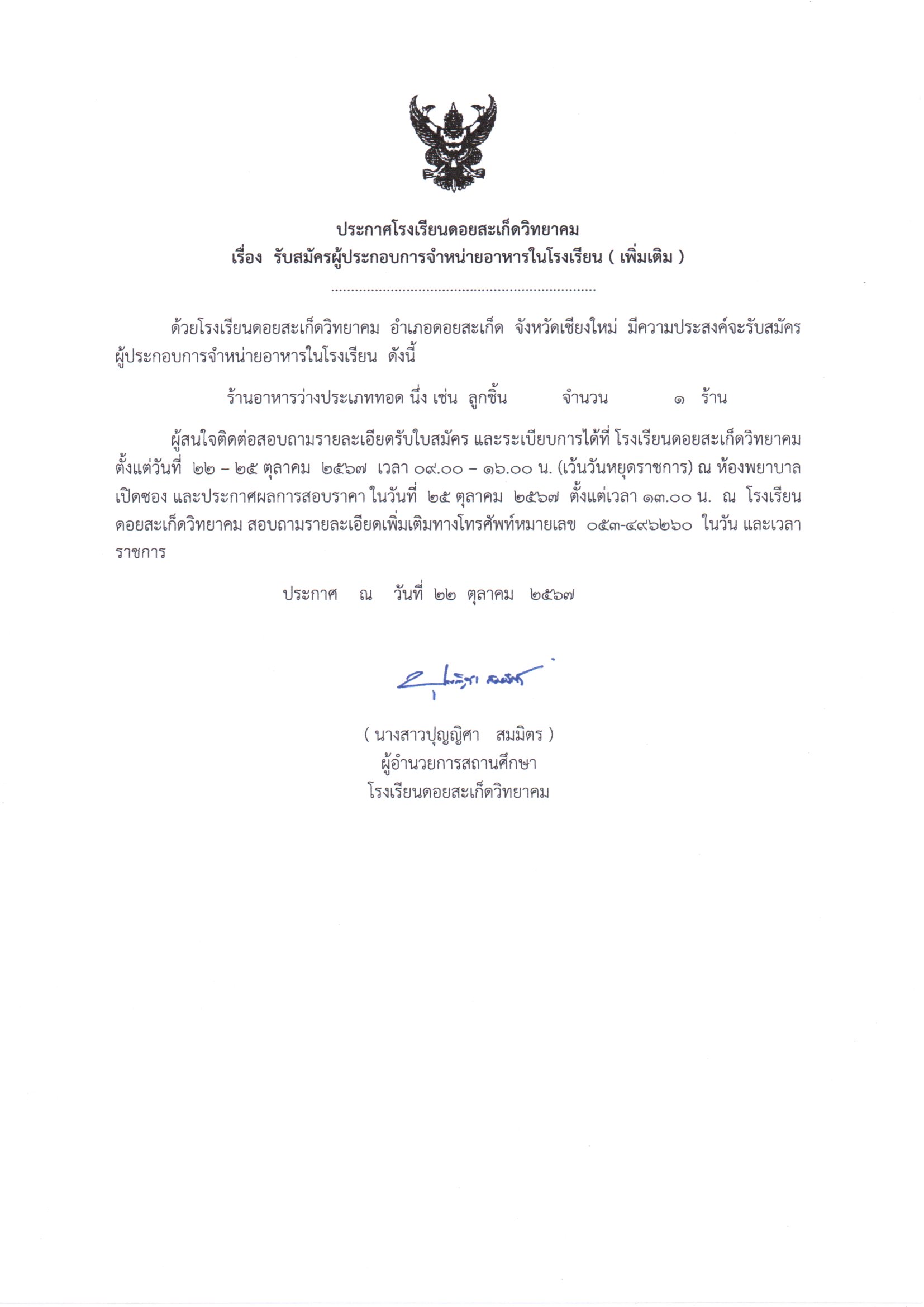 รับสมัครผู้ประกอบการจำหน่ายอาหารในโรงเรียน (เพิ่มเติม)