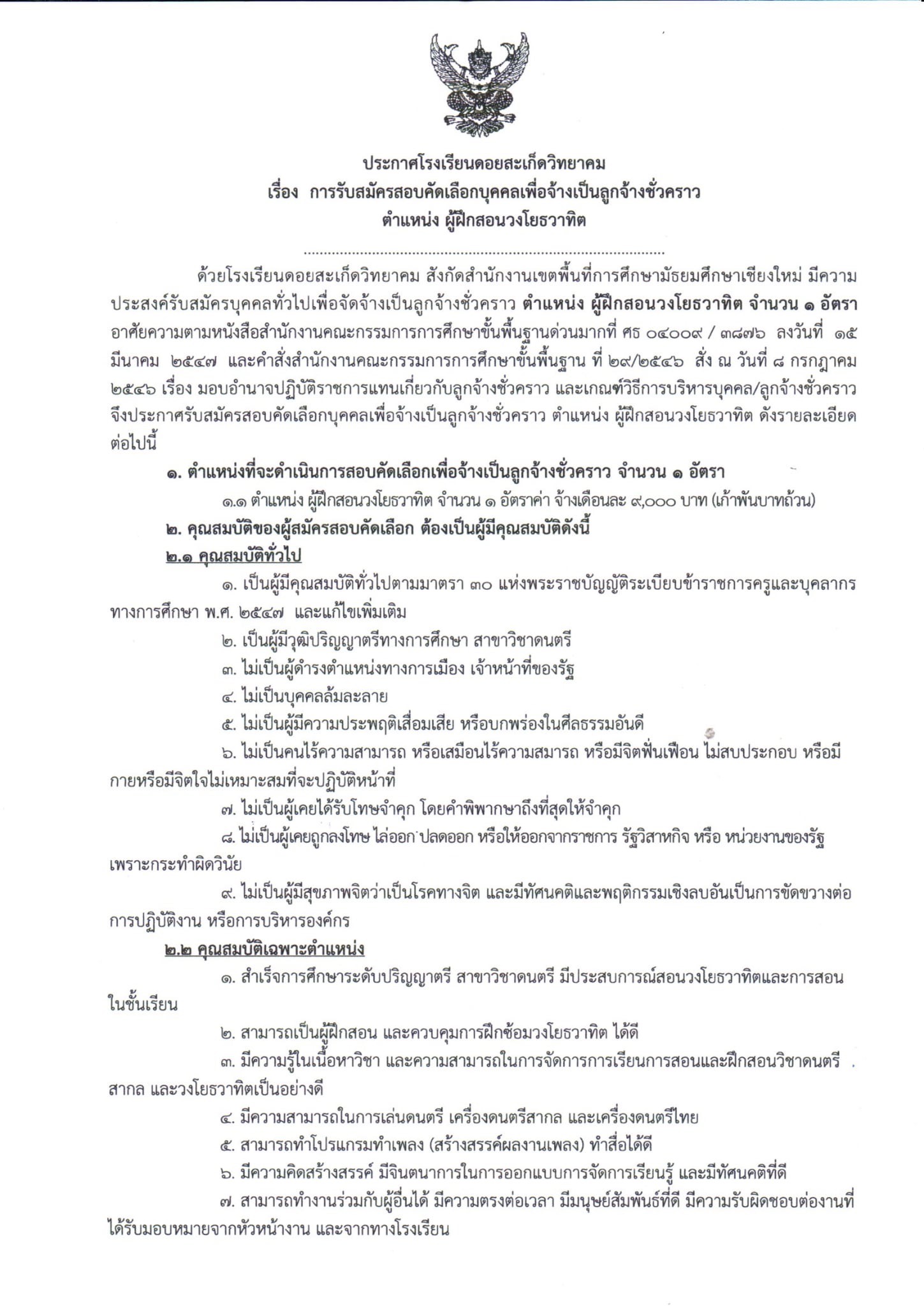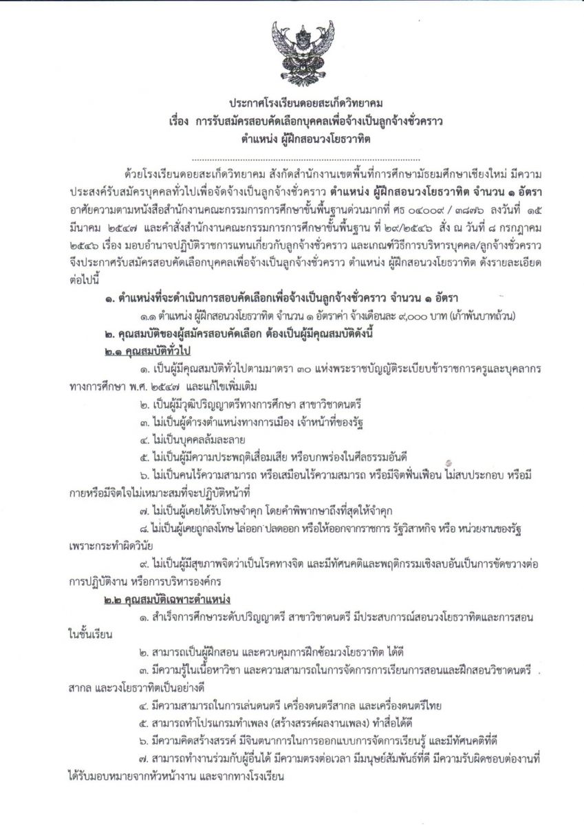 รับสมัครสอบคัดเลือกบุคคลเพื่อจ้างเป็นลูกจ้างชั่วคราว ตำแหน่ง ผู้ฝึกสอนวงโยธวาทิต