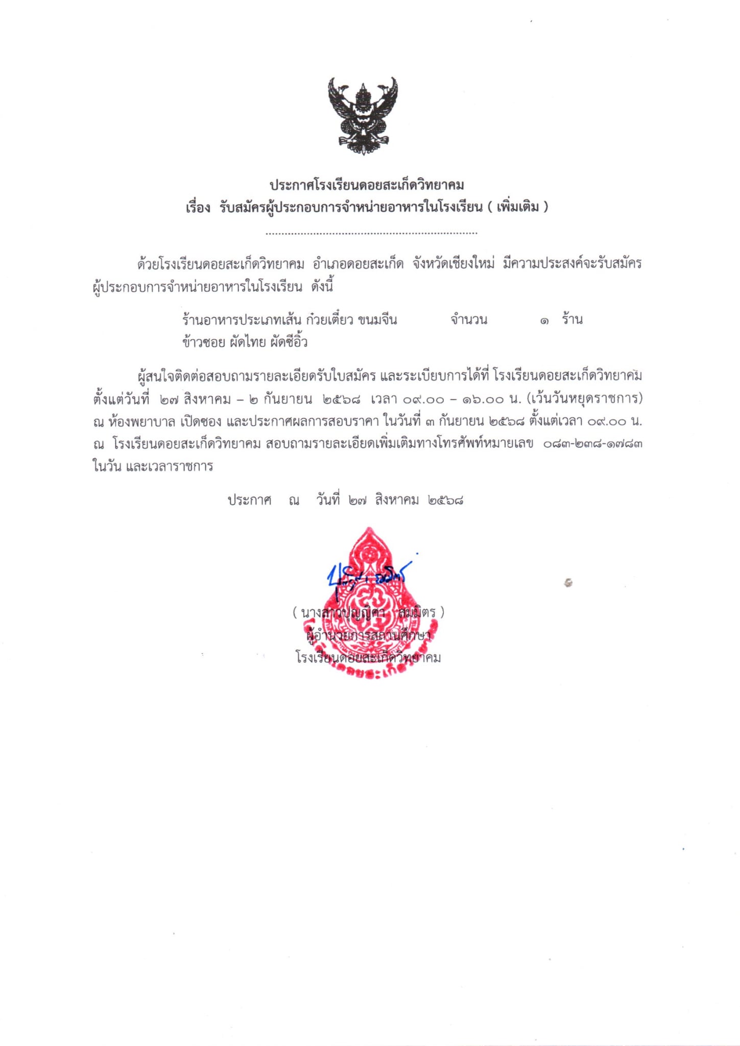รับสมัครผู้ประกอบการจำหน่ายอาหารในโรงเรียน (เพิ่มเติม)