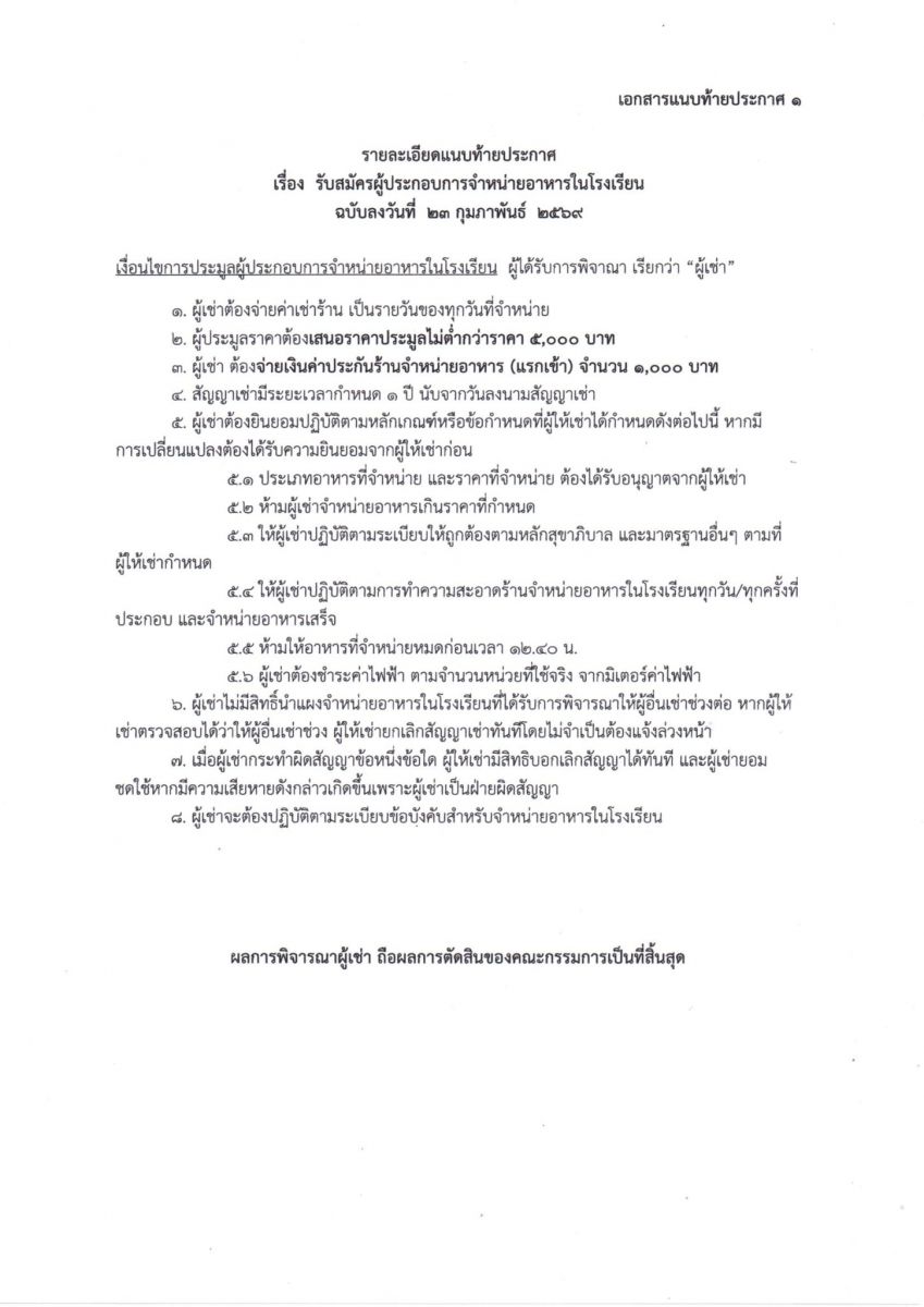 ประกาศโรงเรียนดอยสะเก็ดวิทยาคม เรื่อง รับสมัครผู้ประกอบการจำหน่ายอาหารในโรงเรียน