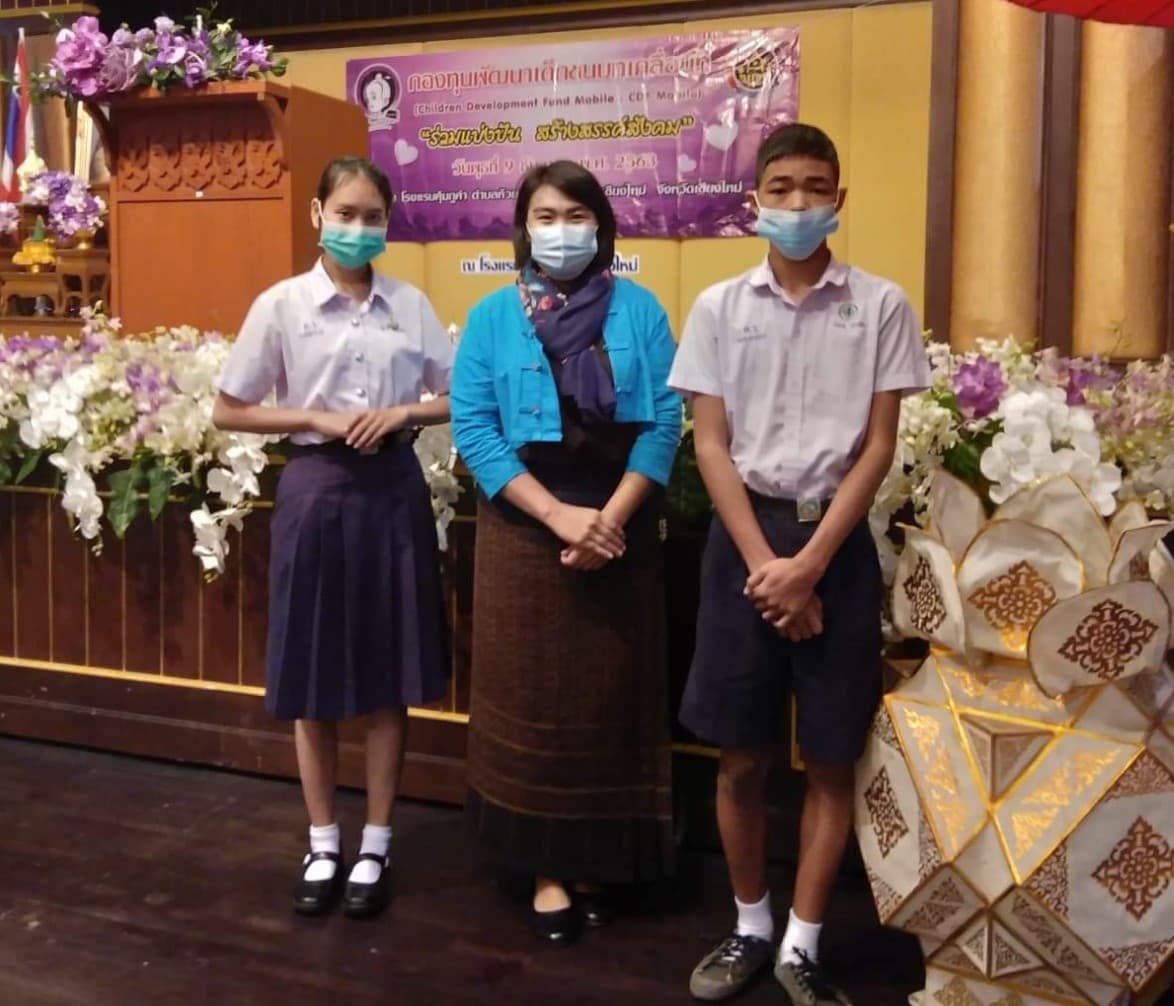 โรงเรียนดอยสะเก็ดวิทยาคม ขอขอบพระคุณกองทุนพัฒนาเด็กชนทบเคลื่อนที่ "ร่วมแบ่งปัน สร้างสรรค์สังคม" ที่ได้มอบทุนการศึกษา ให้กับนักเรียนโรงเรียนดอยสะเก็ดวิทยาคม จำนวน ๒ ทุน ทุนละ ๓,๐๐๐ บาท