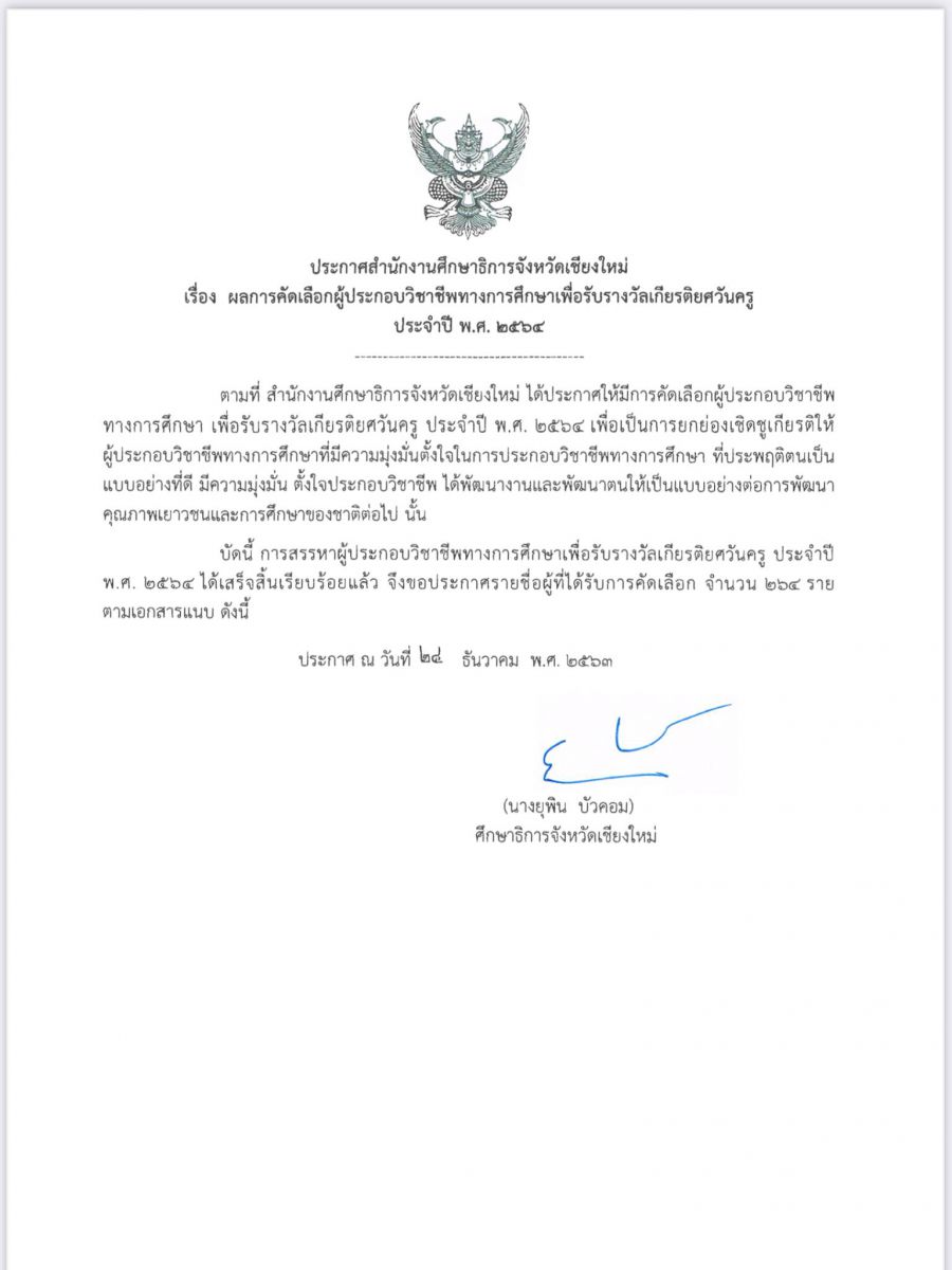 โรงเรียนดอยสะเก็ดวิทยาคมขอแสดงความยินดีกับ คุณครูพรพิมล บุญโคตร กลุ่มสาระการงานอาชีพ รางวัลพระพฤหัสบดี ประจำปี พ.ศ. ๒๕๖๓ จากสำนักงานคณะกรรมการส่งเสริมสวัสดิการและสวัสดิภาพครูและบุคลากรทางการศึกษา