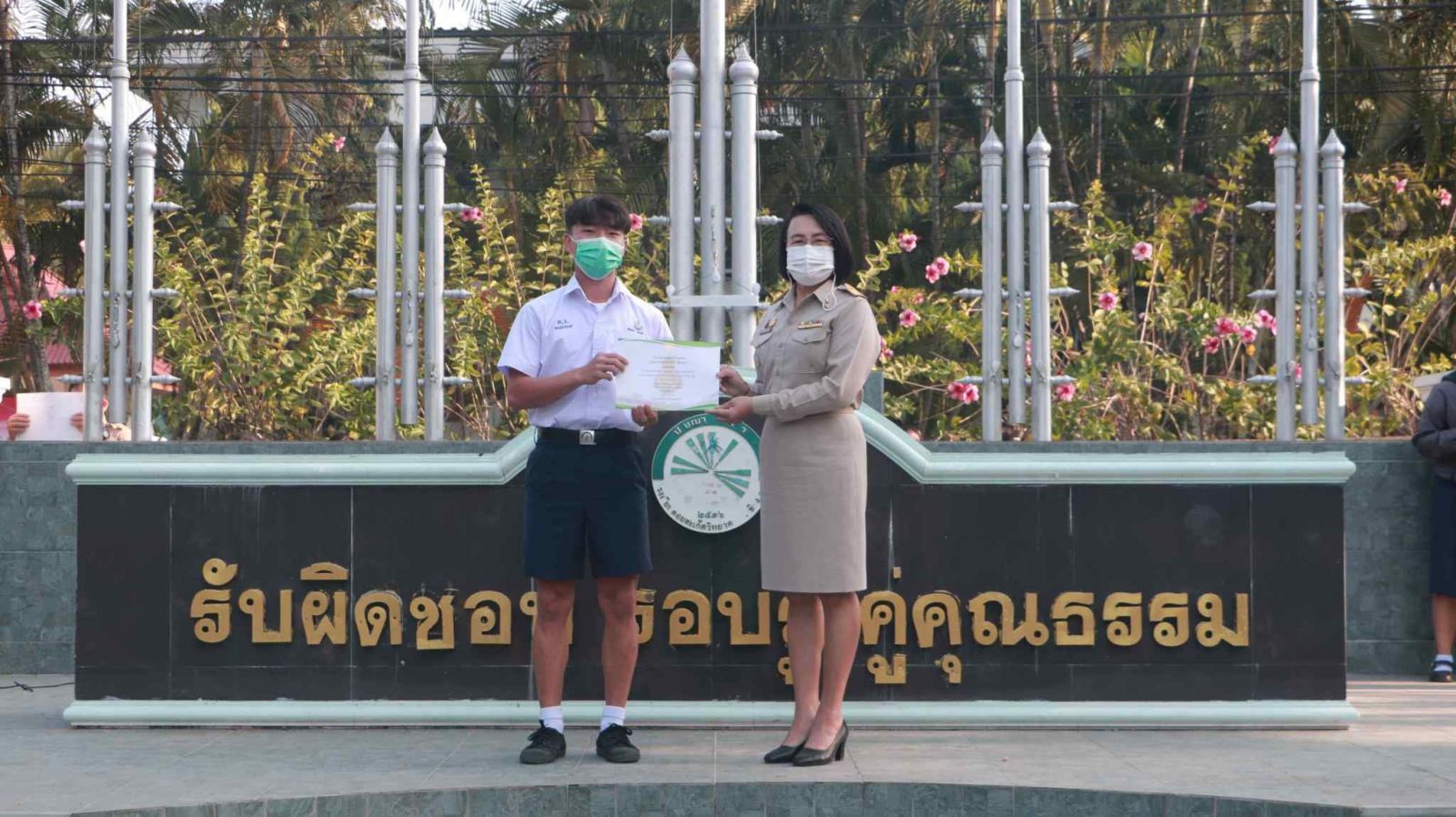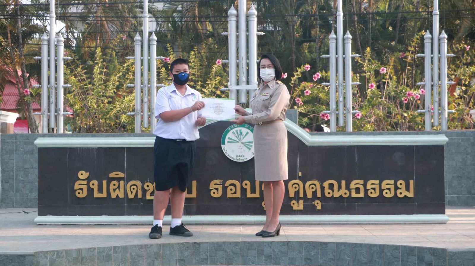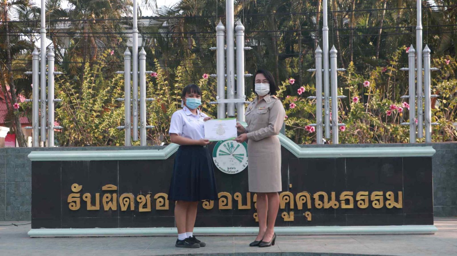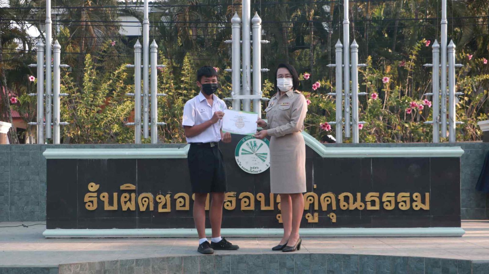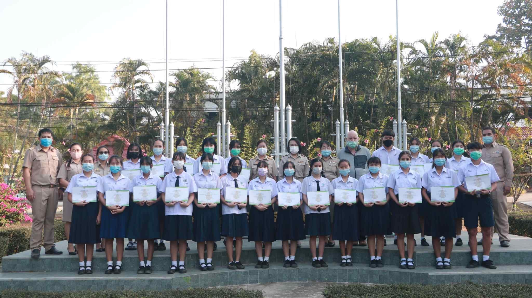 นางดวงใจ ญาณโรจน์ ได้ให้เกียรติมอบใบประกาศนียบัตร แก่นักเรียนผู้ชนะเลิศการแข่งขันทักษะทางภาษา เนื่องในกิจกรรมสัปดาห์ภาษาต่างประเทศ กลุ่มสาระการเรียนรู้ภาษาต่างประเทศ โรงเรียนดอยสะเก็ดวิทยาคม