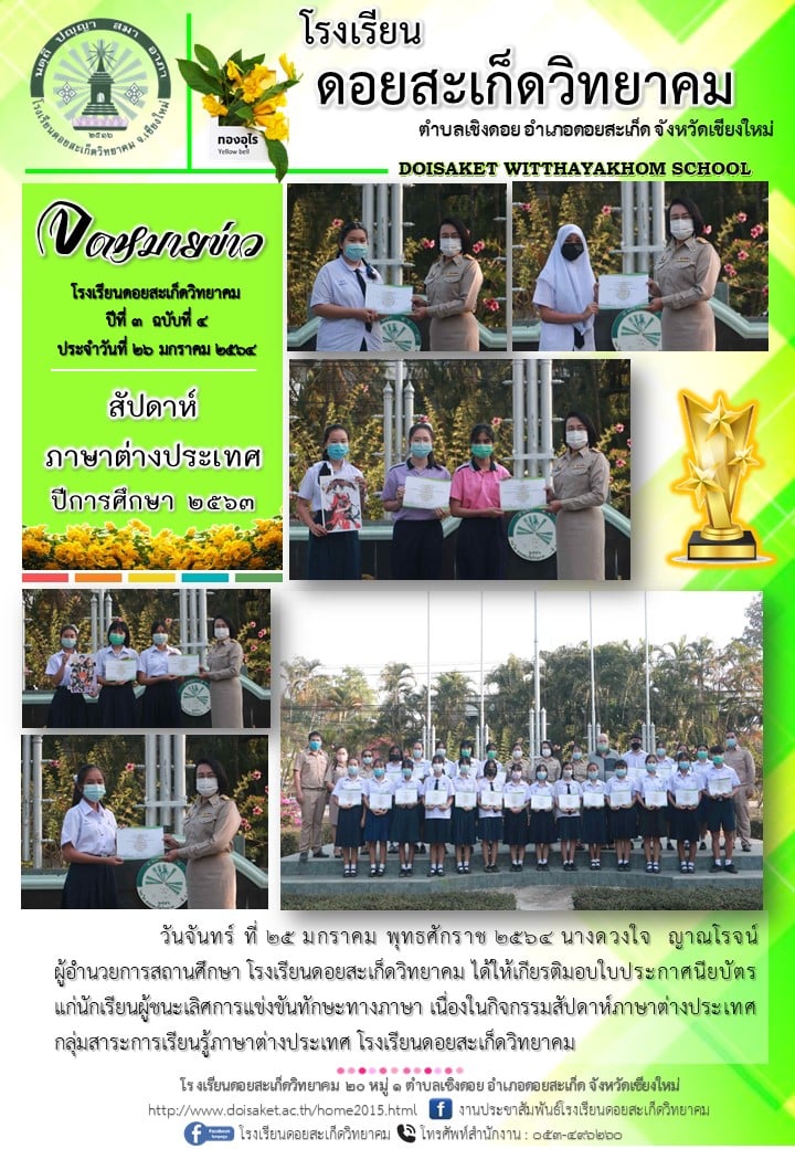 จดหมายข่าว ปีที่ ๓ ฉบับที่ ๔ ประจำวันที่ ๒๖ มกราคม ๒๕๖๔ "สัปดาห์ภาษาต่างประเทศ ประจำปีการศึกษา ๒๕๖๓"