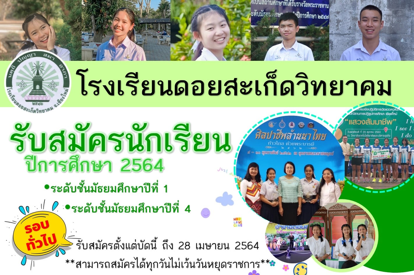 โรงเรียนดอยสะเก็ดวิทยาคม รับสมัครนักเรียนใหม่ ปีการศึกษา 2564