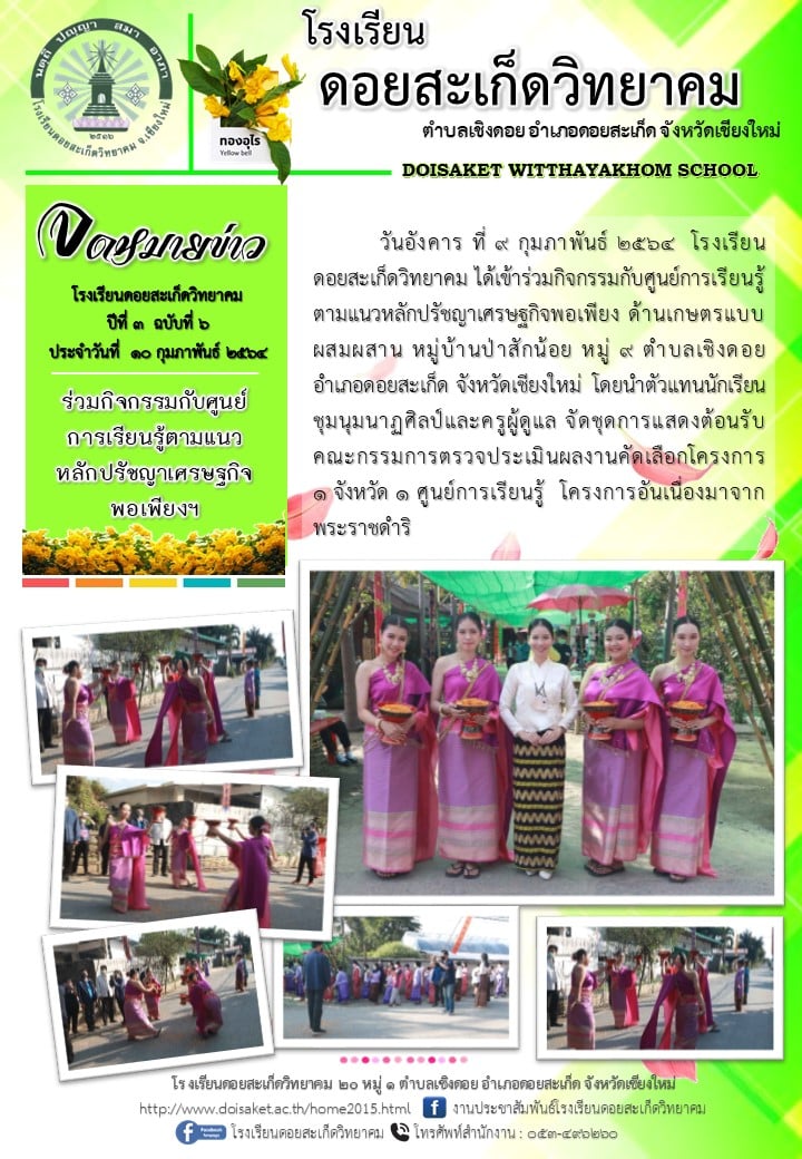 จดหมายข่าว ฉบับที่ ๖ ปีที่ ๓ ประจำวันที่ ๑๐ กุมภาพันธ์ ๒๕๖๓ "ร่วมกิจกรรมกับศูนย์การเรียนรู้ตามแนวหลักปรัชญาเศรษฐกิจพอเพียงฯ"