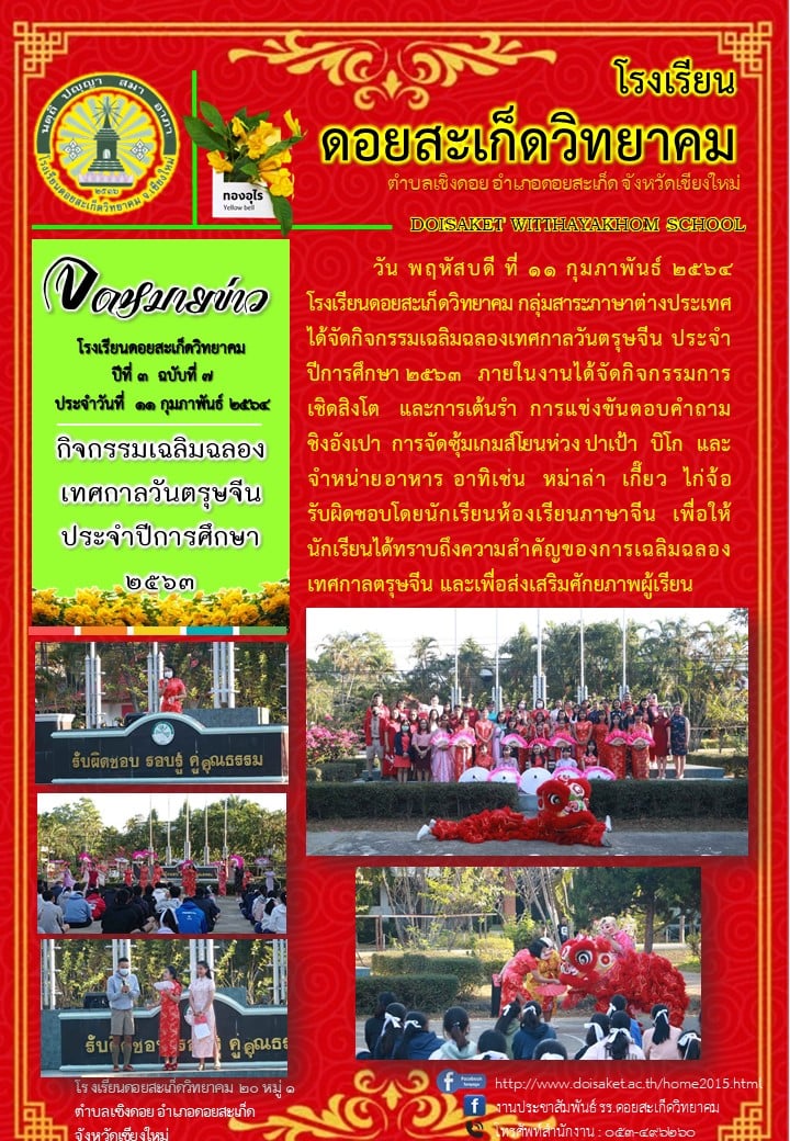 จดหมายข่าว ฉบับที่ ๗ ปีที่ ๓ ประจำวันที่ ๑๑ กุมภาพันธ์ ๒๕๖๔ "กิจกรรมเฉลิมฉลองเทศกาลวันตรุษจีน ประจำปีการศึกษา ๒๕๖๓"
