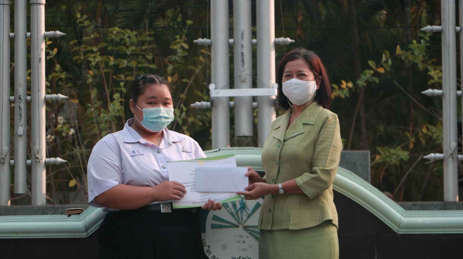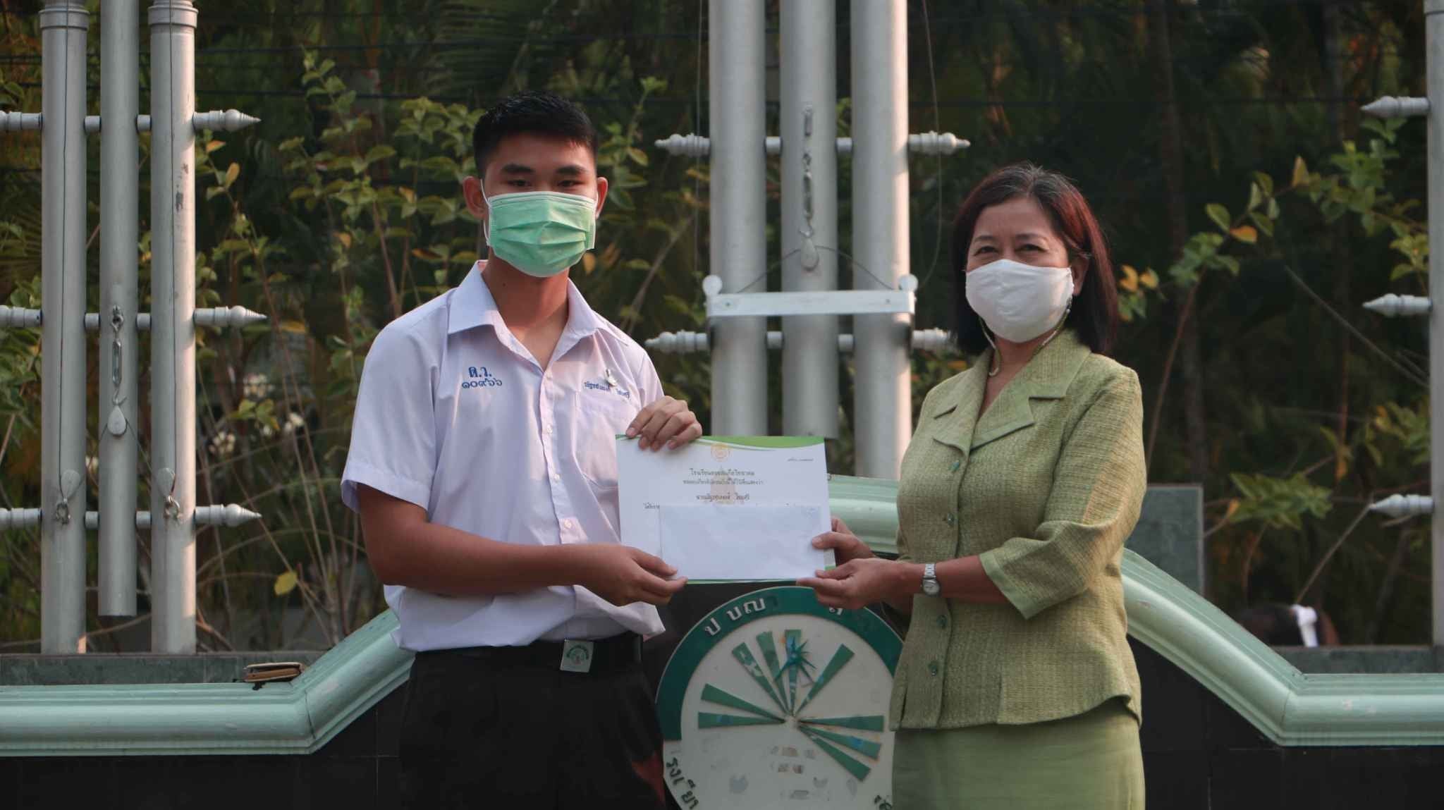 กิจกรรมมอบเกียรติบัตร และเงินรางวัล ให้กับนักเรียนผู้ชนะการแข่งขัน และนักเรียนผู้เข้าร่วมการแข่งขันการประกวด"การออกแบบเกียรติบัตร เพื่องานกิจกรรมของโรงเรียน"