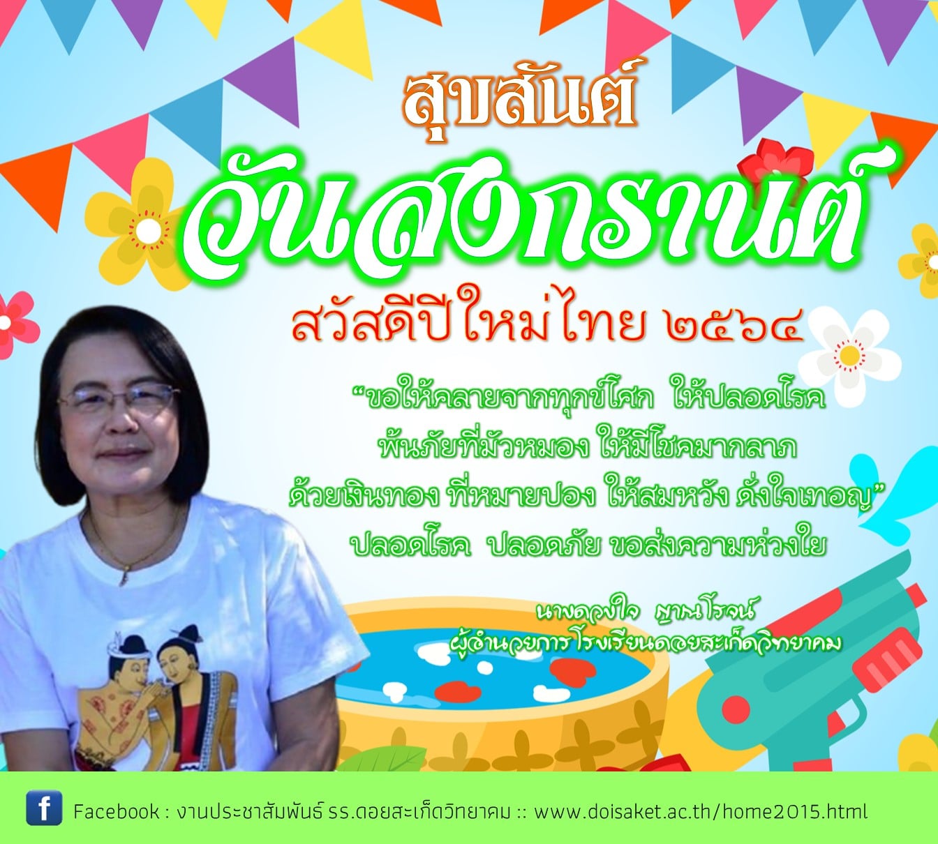 สงกรานต์ ๒๕๖๔ สืบสานประเพณีไทย ขออวยชัยให้มีสุขสมหวัง มีพลังในการต่อสู้ ร่างกายแข็งแรง ปราศจากโรคภัย ปลอดภัยจากเชื้อไวรัสโควิด-19 (COVID-19)